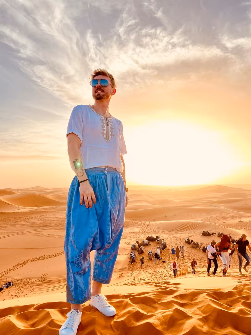 "Tive o prazer de conhecer um pouquinho da Itália, Alemanha, França e realizei o sonho de ir aos parques da Disney em Paris. Fiz ainda, uma viagem inesquecível para o Marrocos, onde conheci um pouco a imensidão do deserto do Saara e toda suas culturas.