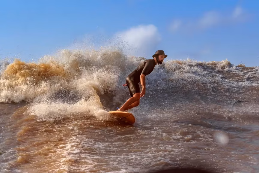 Brusquenses contam experiência de surfar na pororoca do rio Mearim, no Maranhão
