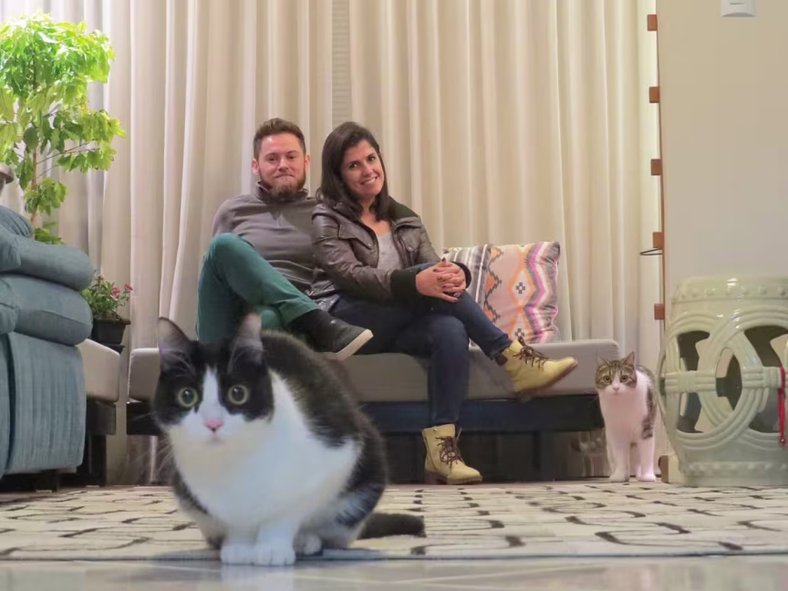 O casal diz que isso nunca atrapalhou a hospedagem de ninguém e que os gatos são carinhosos e curiosos. Diogo destaca que informa a presença dos bichinhos no anúncio na plataforma.