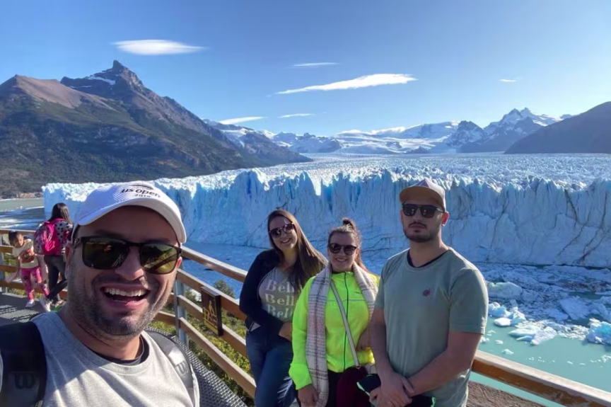 Os amigos ficaram durante três noites em El Calafate, na Patagônia argentina, onde visitaram o Parque Glacial e fizeram passeios de barco.