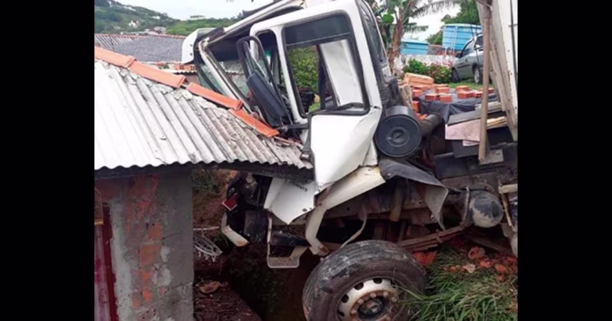 Caminhoneiro perde controle e colide com residência, em São José
