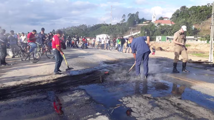 A Polícia Militar Rodoviária (PMRv) esteve no local e solicitou o desbloqueio, o que foi acatado pelos manifestantes após gerar congestionamento.