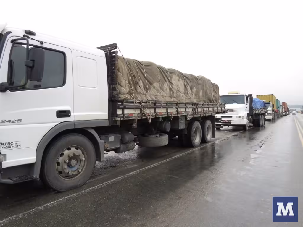 A Polícia Militar Rodoviária presta apoio no local e orienta dos motoristas com duas viaturas. O sargento Ernesto Martins diz que há, pelo menos, três quilômetros de rodovia com caminhões parados.