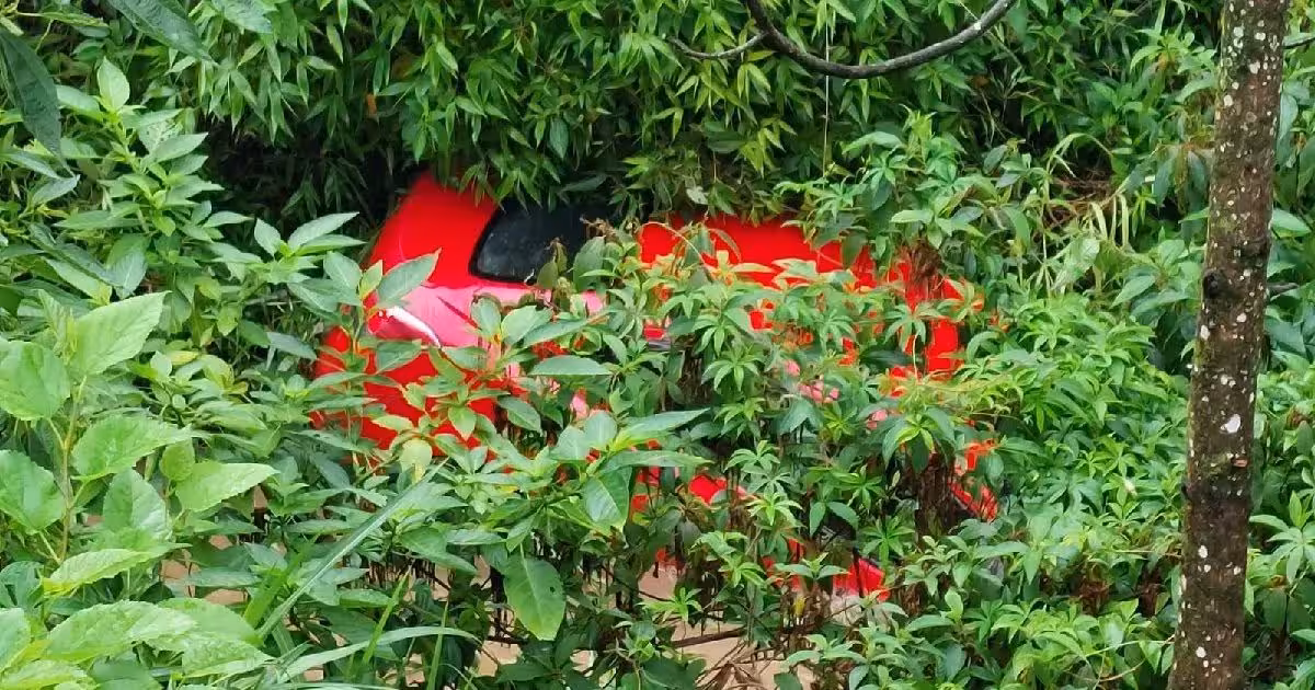 Carro fica submerso após cair em ribeirão no Vale do Itajaí