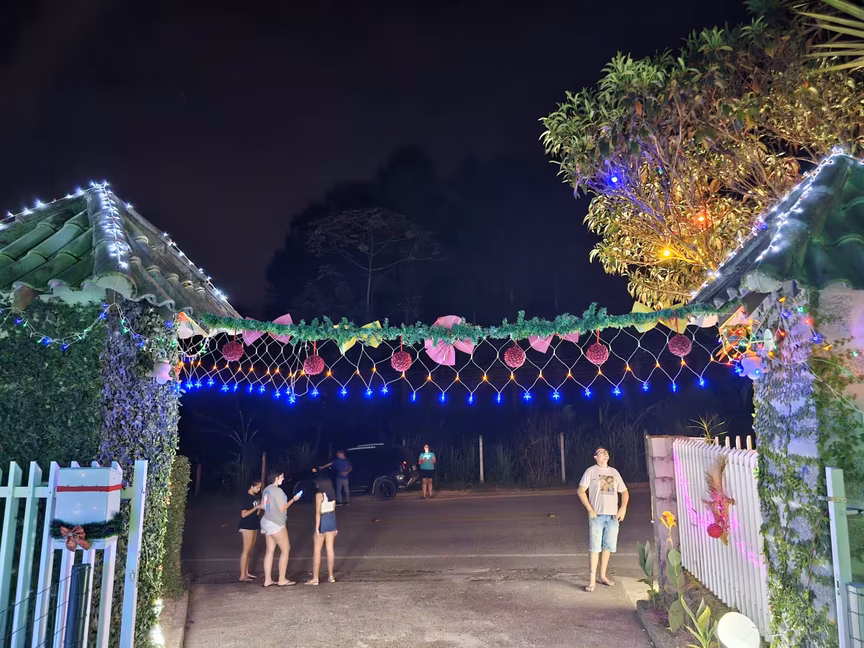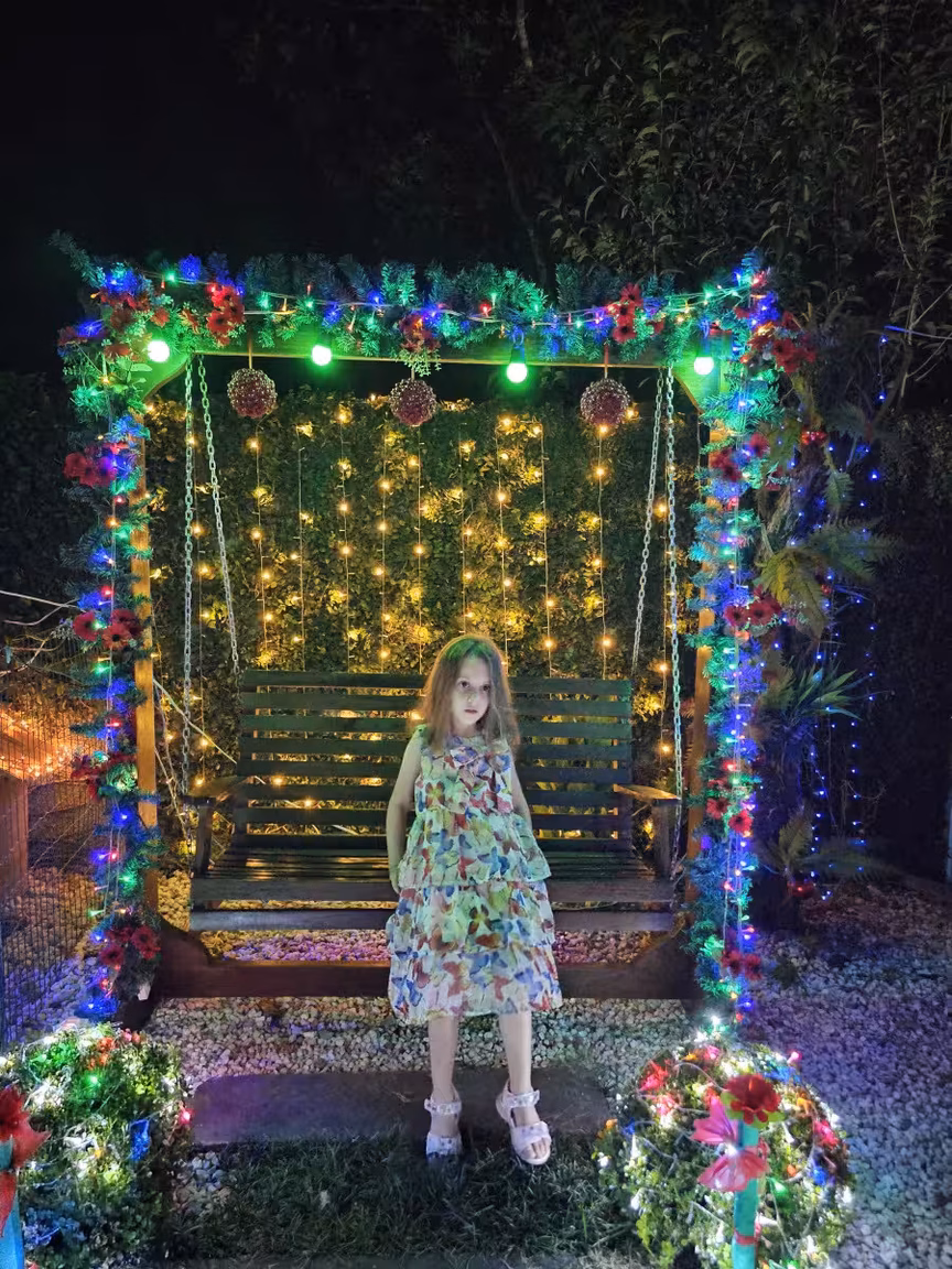 O cenário festivo, cuidadosamente elaborado, desenha-se ao longo da rodovia SC-410, no bairro Morro da Onça, tornando-se uma atração irresistível para os moradores locais e das cidades da região.