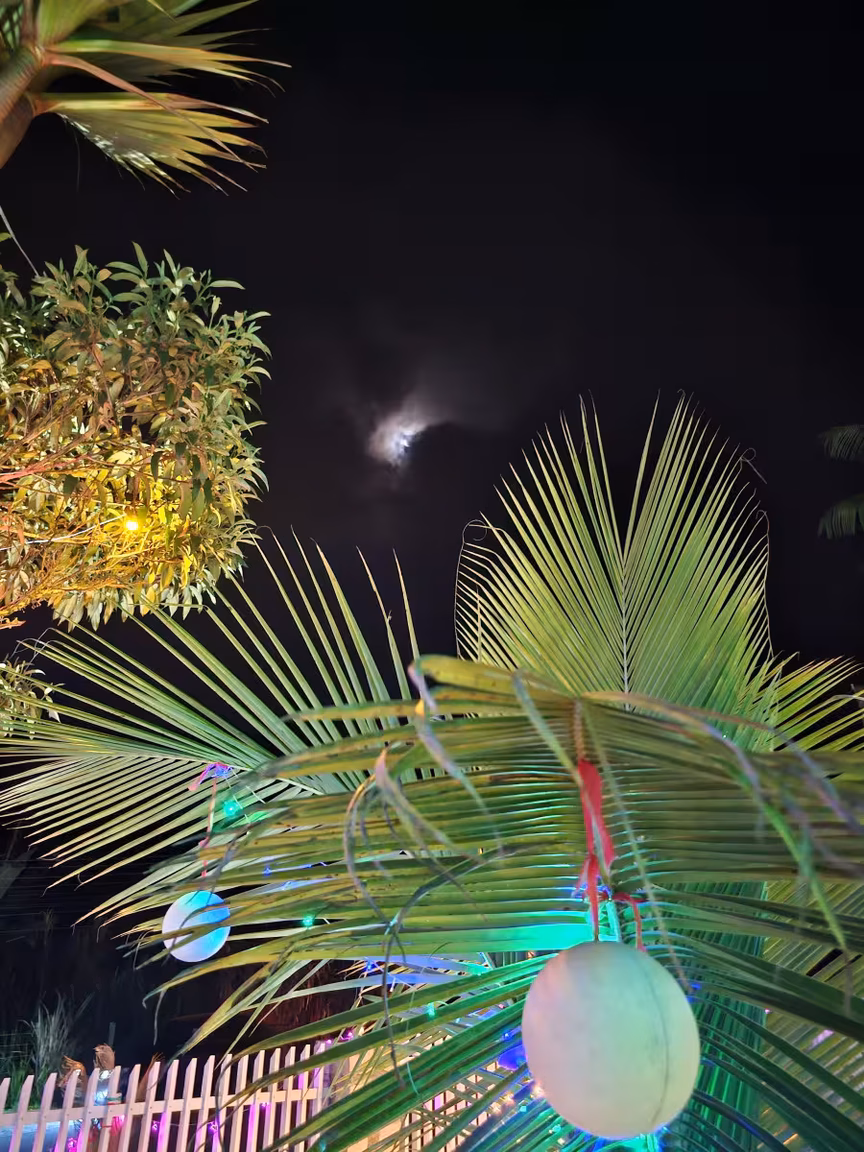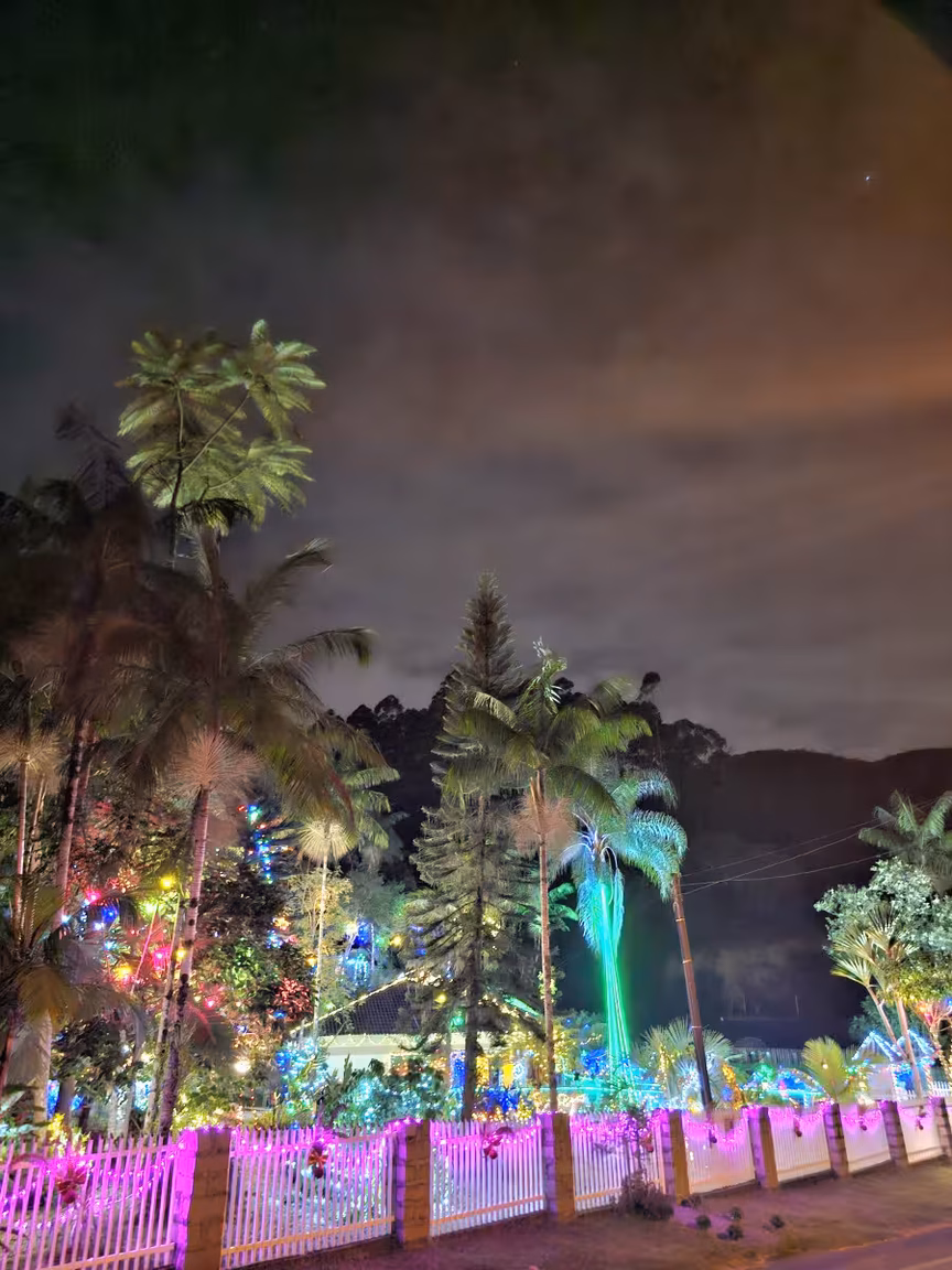 Ao cair da noite, as luzes coloridas então emergem à distância, e a entrada para contemplar torna-se quase uma obrigação.