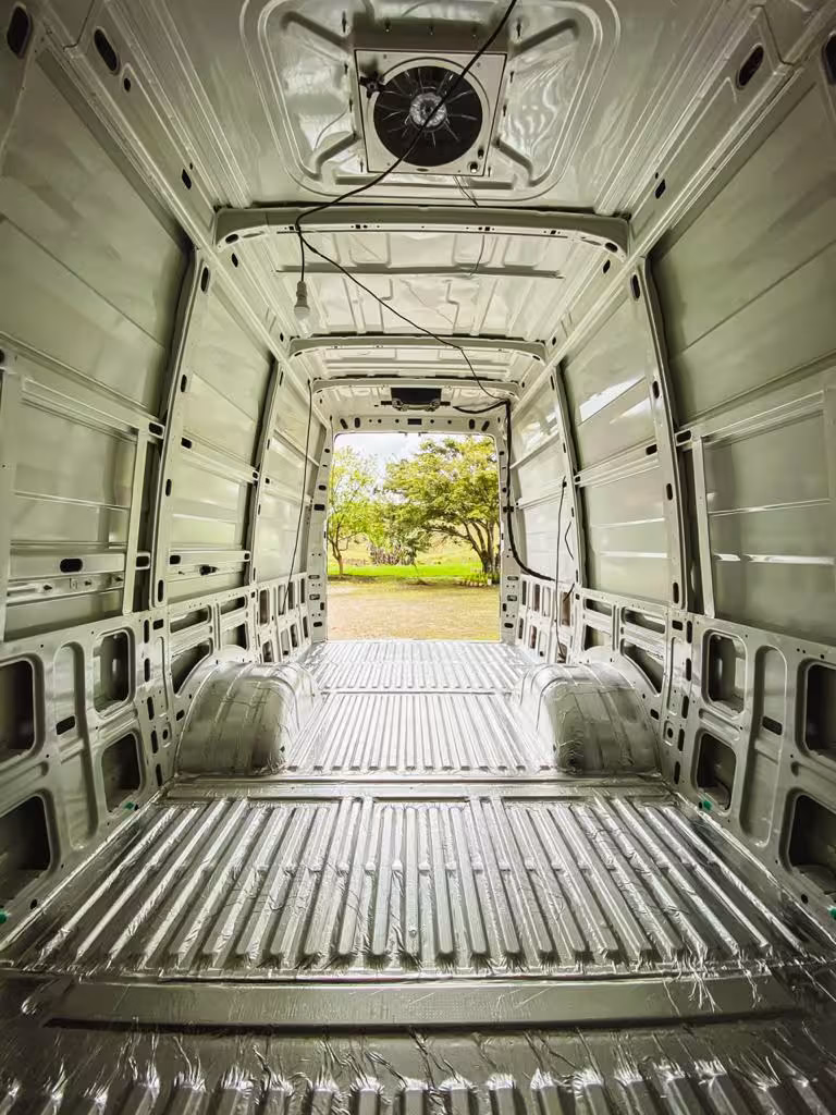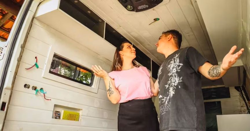 O casal comprou uma van Iveco Daily Maxi Furgone para transformar em um motorhome. O veículo era utilizado para transporte de fumo e afins. “Desmontamos ela toda, limpamos e começamos a reconstruir para transformar em uma casa”, explica Fabi.