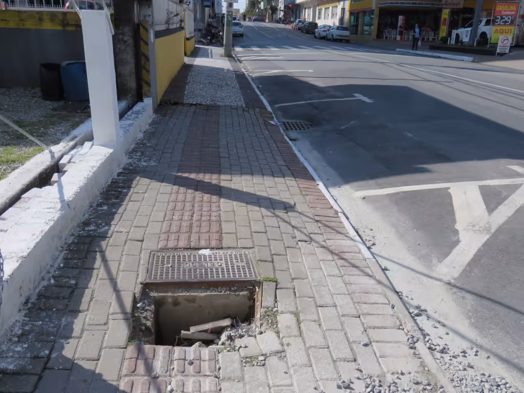 Cego fica ferido ao cair em buraco no Centro de Brusque