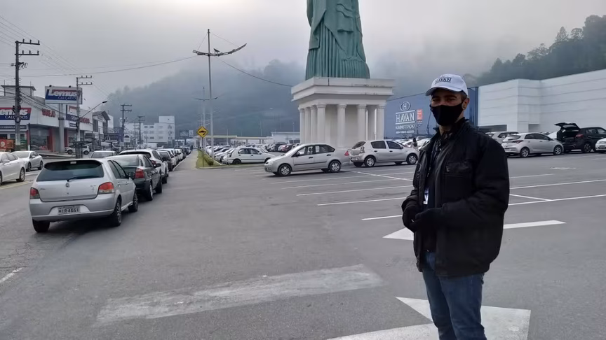 De acordo com Ilson Ramos dos Santos, que é segurança no estacionamento da Havan, está desde às 6h30 controlando o acesso da entrada ao estacionamento da loja, passagem dos colaboradores e pedestres e também observando para que carros não furem a fila.