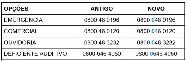 Veja como ficarão os números de emergência, comercial, ouvidoria e deficiente auditivo