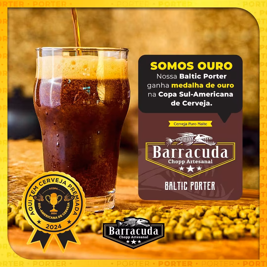 A Cervejaria Barracuda foi um dos grandes destaques e venceu ouro e prata em concurso da Copa Sul-Americana de Cerveja de 2024, que aconteceu em Bento Gonçalves, no Rio Grande do Sul. O evento foi realizado durante o Envase Brasil, no último dia 25. Os estilos das cervejas premiadas da Barracuda foram a Baltic Porter e Red Ale. A Baltic Porter, que levou o ouro no estilo Baltic-Style Porter, é de origem inglesa. Ela é caracterizada por um rico dulçor maltoso e notas que remetem ao caramelo, café e chocolate amargo. Sua coloração é marrom escura e possui colarinho bege, encorpado e persistente. O teor alcoólico é de 7,5%, e o IBU (Unidade Internacional de Amargor) de 30. Já a Red Ale estilo American-Style Amber/ Red Ale, que levou a medalha de prata, é de origem irlandesa. Ela contém notas que também remetem ao caramelo e bala toffee. Possui a sua coloração âmbar a cobre avermelhado, colarinho baixo, de cor que vai do quase branco ao bege. Possui teor de álcool 4,4% e 20 de IBU.