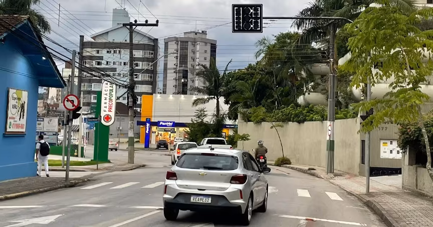 Chuva causa desligamento de semáforos no Centro de Brusque; entenda