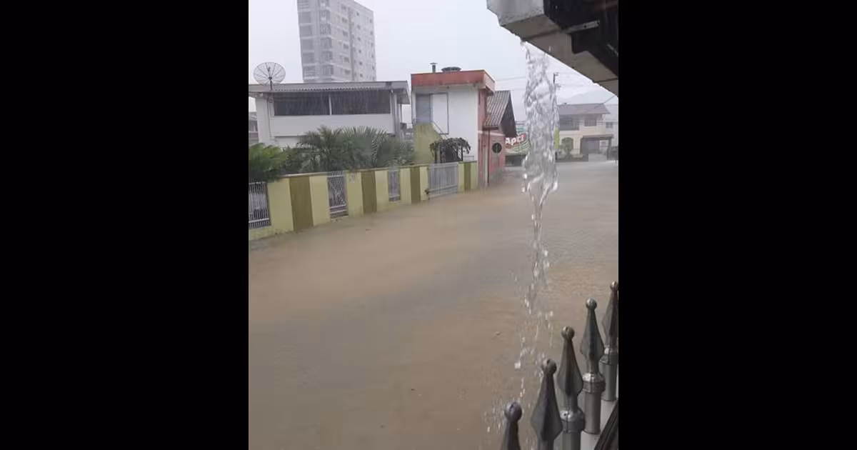 Por volta de 15h10, já se registrava alagamento, por exemplo, nas ruas Camboriú e Vitor Meirelles, ambas no bairro Santa Rita.
