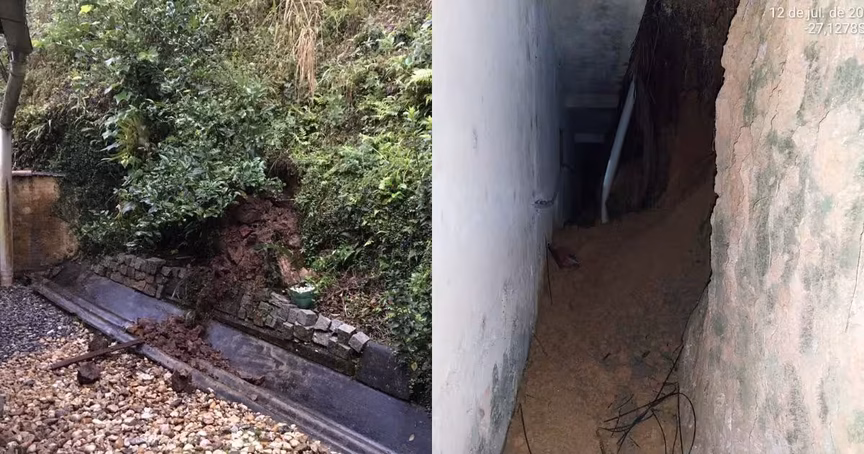 Três ocorrências foram registradas. Trata-se de dois deslizamentos no bairro Azambuja e um no bairro Poço Fundo.