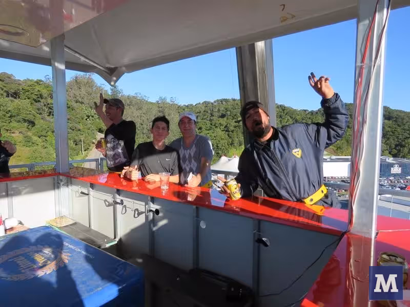 O diferencial, é que quando as pessoas entram, são presas no balcão por um cinto abdominal e mosquetões. Após estarem completamente seguras, o bar começa a subir, içado por um guindaste, há uma altura de 40 metros, equivalente a um prédio de 14 andares. Lá em cima, as pessoas tem dez minutos para beberem e apreciarem a vista.
