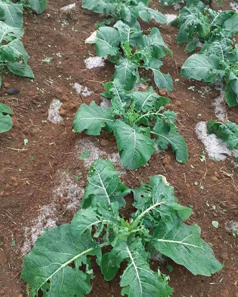Chuva de pedra também no Alto Vale do Rio Tijucas na tarde de hoje. Em Angelina, as plantações de hortaliças sentiram os impactos do gelo que chegou acumular.