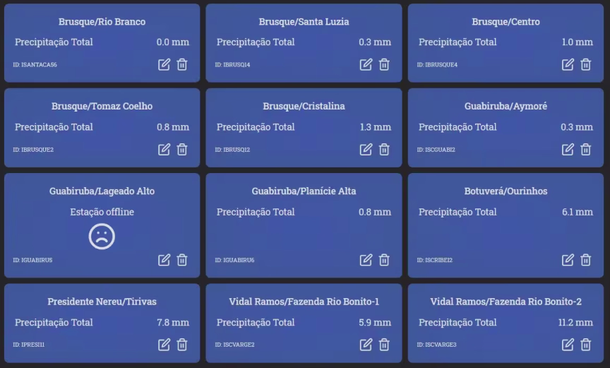 Confira abaixo os números da precipitação registrados em cada lugar descrito em anexo na tabela: