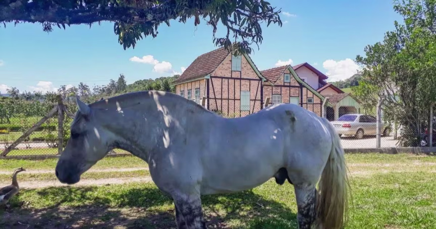 Desde a arquitetura germânica até a carroça toda original que foi utilizada na lida do campo, passando pelos lindos cavalos.