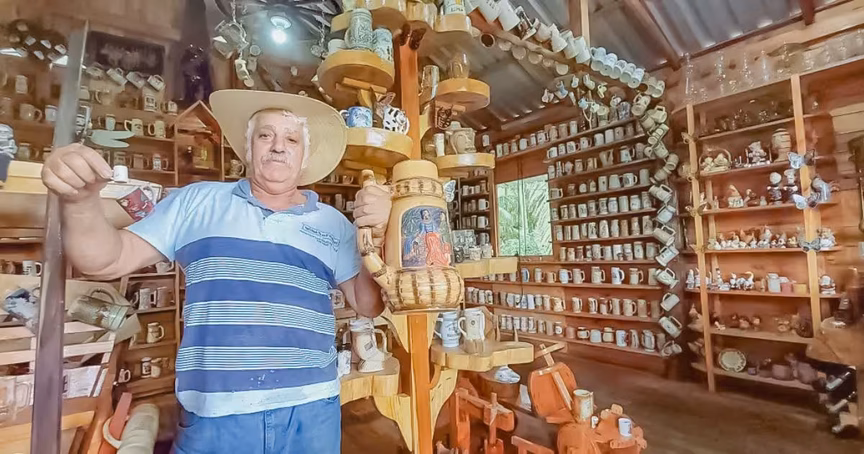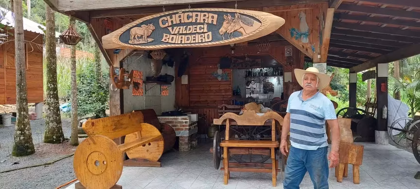 Mas, quem entra na chácara se impressiona não apenas com a coleção de copos. As habilidades daquele menino Valdeci do Paraná parecem o ter acompanhado na trajetória de sua vida.