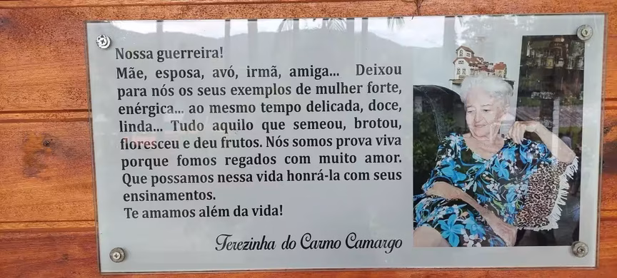 "Ela faleceu em agosto de 2018 e foi a partir de então que resolvi construir aquele tão sonhado espaço desejado por ela enquanto viva. Há quatro anos, portanto, venho trabalhando nisso e atualmente em 2022, o cantinho da dona Terezinha está praticamente concluído", relata emocionado Valdeci emocionado.