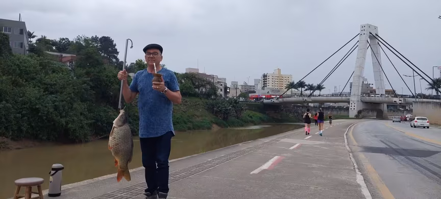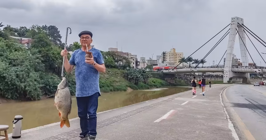 Conheça o morador de Brusque que já pescou peixe de 19 quilos no rio Itajaí-Mirim