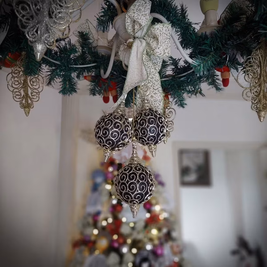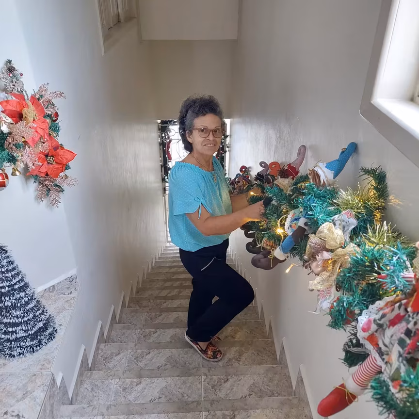 Nenhum cômodo da residência escapou dos enfeites, tudo levando seu capricho em cada detalhe. Seja no pinheiro todo enfeitado com as bonecas produzidas por ela, nas luzes coloridas espalhadas pelo interior da casa; tudo faz lembrar a ocasião festiva.