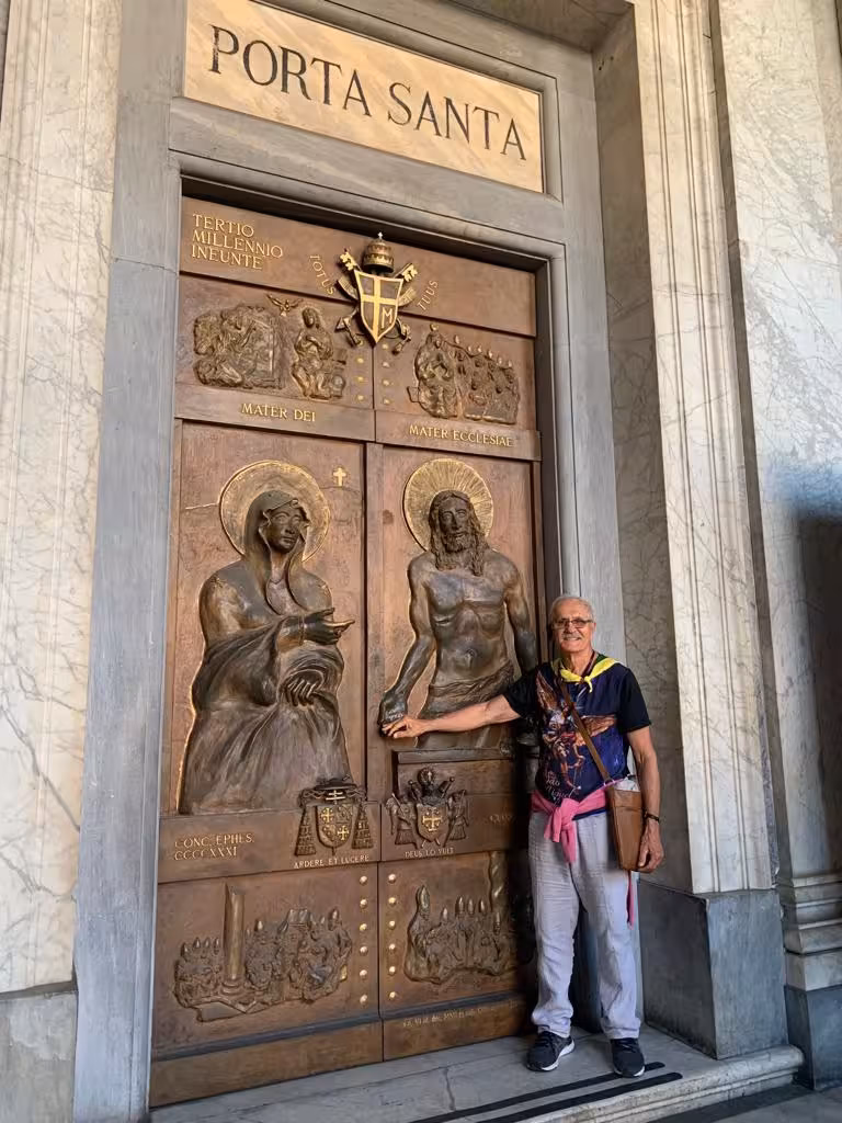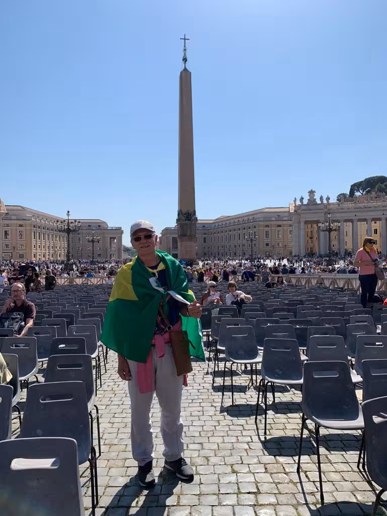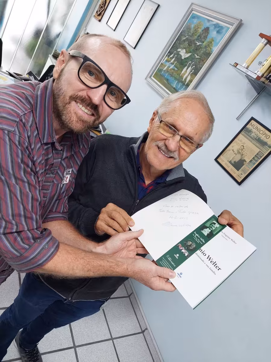 "Primeiro fomos à Roma, onde em audiência papal, tive o privilégio de levar às mãos de Sua Santidade, o Papa Francisco, um exemplar de meu livro, Eugênio Welter: Um Homem Iluminado, que conta a história de meu pai", relata.
