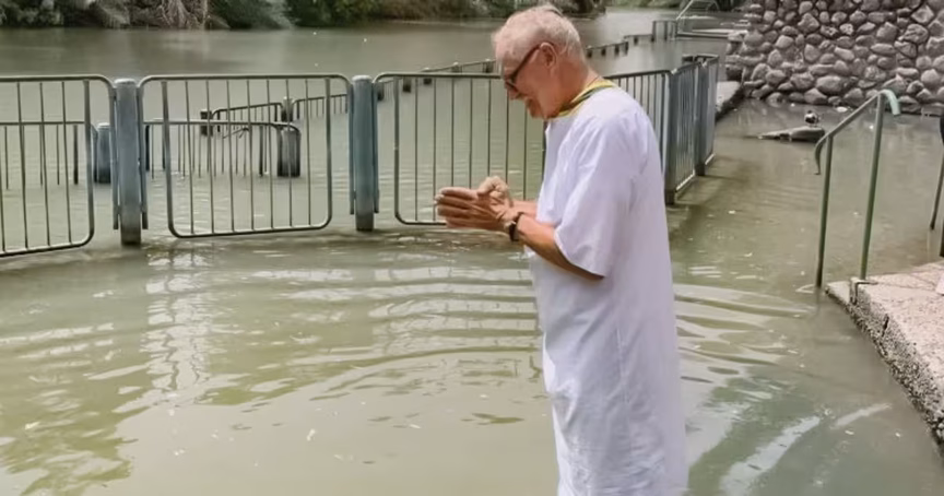 Fé e emoção: brusquense recebe o batismo nas águas do rio Jordão, em Israel