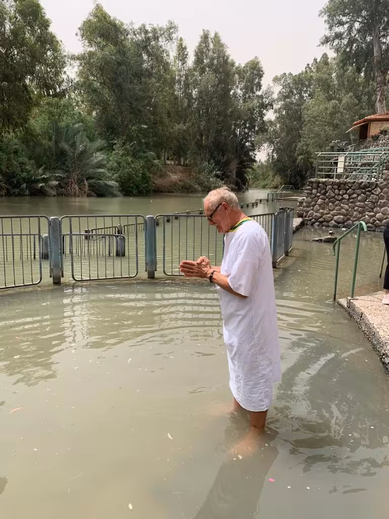 "Posteriormente, fomos ao rio Jordão no mesmo local que João Batista batizou o filho de Deus encarnado. Foi sem dúvida alguma, uma experiência do céu que vivi naquele momento", conta emocionado.