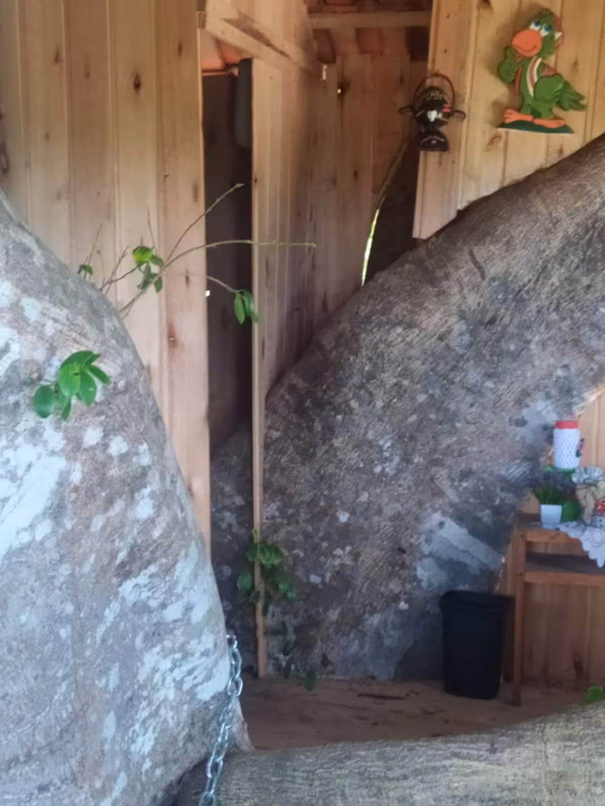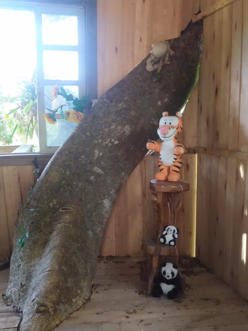Ao chegar perto, as pessoas se impressionam ainda mais diante do que veem. A residência foi erguida a cerca de dez metros do chão e a escada de 35 degraus leva ao seu interior onde o capricho do construtor está presente em cada detalhe.