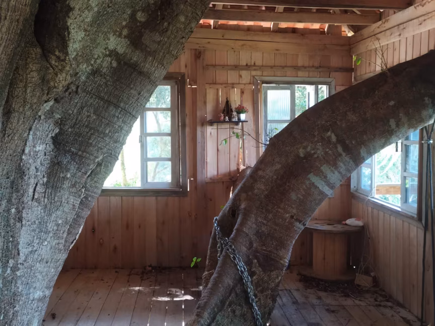 Toda a estrutura foi pensada de forma a não causar dano algum à árvore, tanto que Silvino não usou nenhum prego ou parafuso junto aos galhos, que por sinal, ajudam a integrar na decoração interior. É como se a casa abraçasse a figueira.