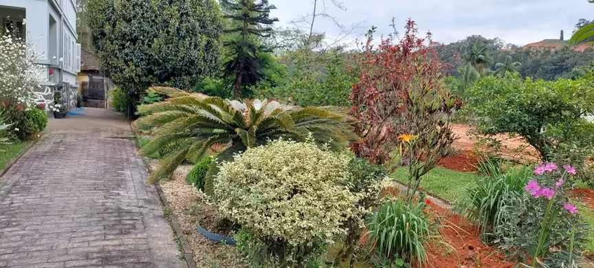 Emoldurando a parte externa temos um lindo jardim, sempre muito bem cuidado pela família Schlindwein