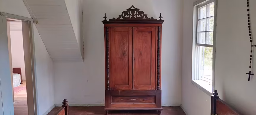 Na parte interna, a residência mantém seus móveis feitos à época antiga