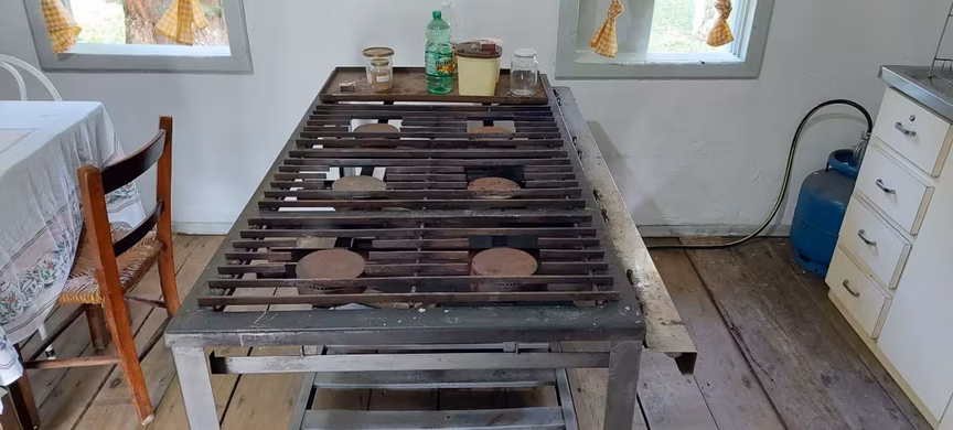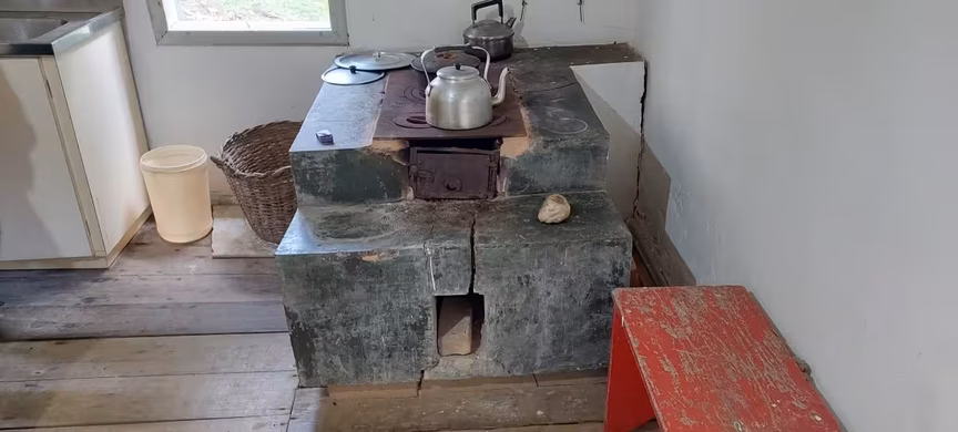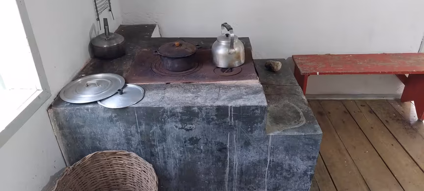 Sem falar do espaço da cozinha, que nos faz retornar ao passado diante de tantas relíquias encontradas naquele ambiente.