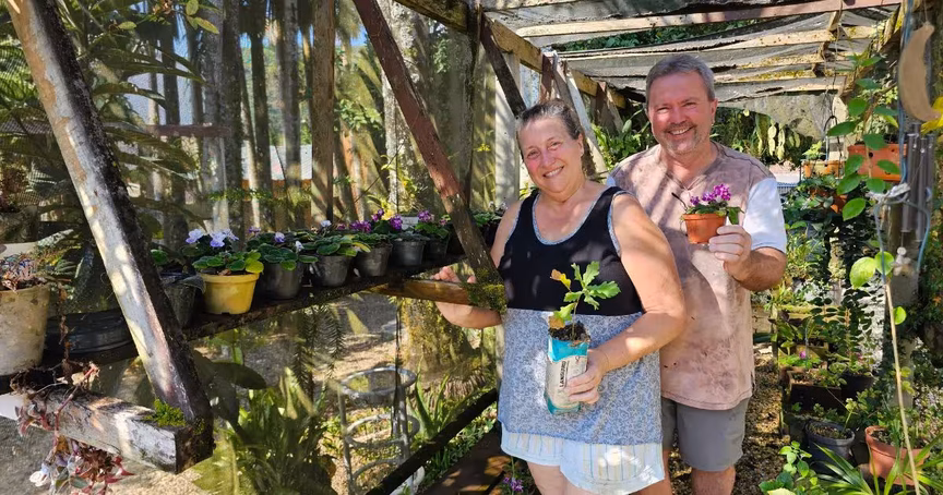 Renilda compartilha que seu amor por flores vem desde a infância, um hobby que aprendeu com sua mãe. Agora, após dez anos de aposentadoria, ela tem a oportunidade de dedicar ainda mais atenção e amor às plantas e flores. Ademir não fica atrás e está sempre presente para auxiliar em qualquer necessidade, seja montando bases para ornamentação ou ajudando a carregar objetos pesados.