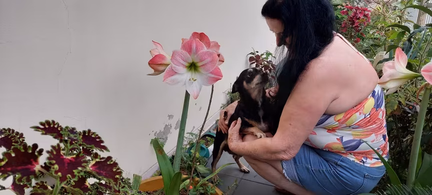 "Minha família, minhas flores e também os meus cachorros, pela ordem, é tudo o que posso enumerar como fontes de maior prazer para a minha vida", relata emocionada Marilete.