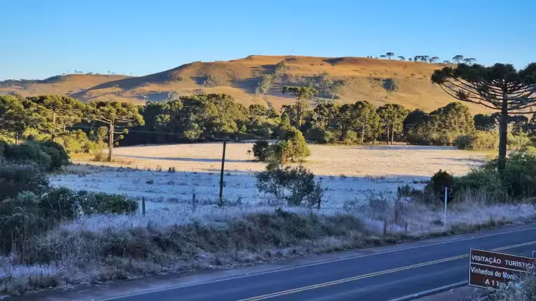 A nova estação meteorológica do Instituto Nacional de Meteorologia (Inmet), recém instalada no lugar, assinalou mínima de -3,4ºC nas primeiras horas da manhã.