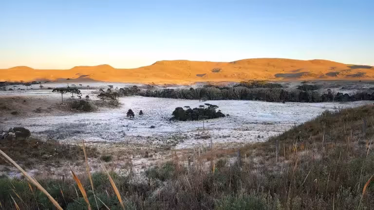 Esta sexta-feira, 1, amanheceu com os campos do Vale esbranquiçados, cobertos por uma considerável camada de gelo, demonstrando o que reserva o mês de julho acerca das condições climáticas de frio.