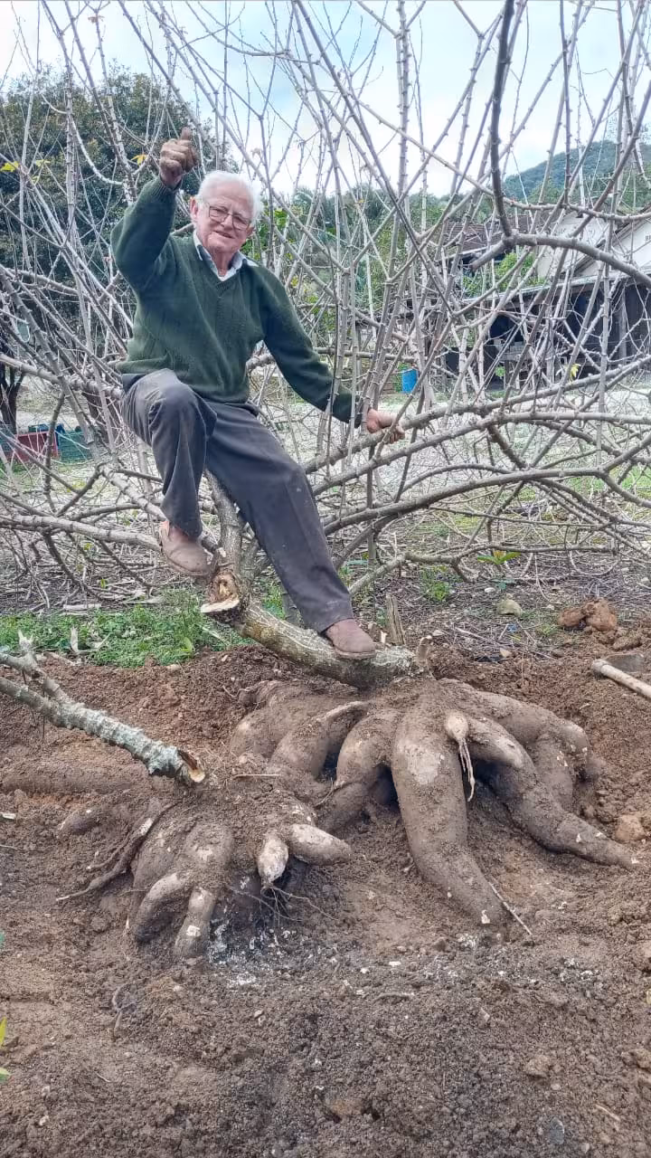 Morador de Brusque colhe raiz de mandioca de 143 quilos no quintal de casa; confira as imagens