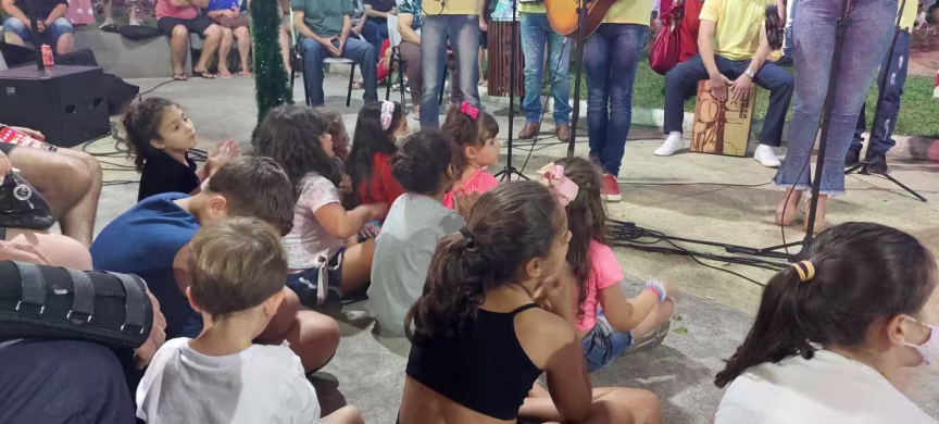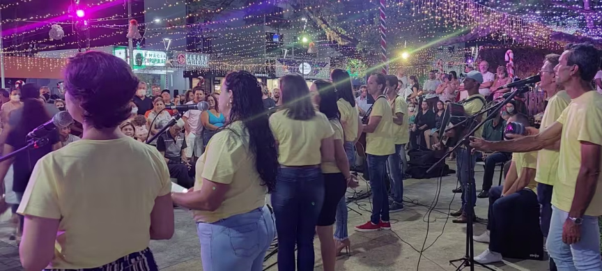 Pessoas de todas as idades foram prestigiar a cantoria do grupo Vozes de Luz, ocorrido na noite de domingo