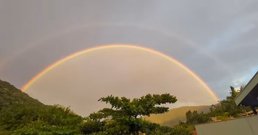 Imagens capturadas mostram a formação de um belíssimo arco-íris como a tempo não era visto, devido à sua nitidez e intensidade das cores apresentadas.
