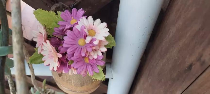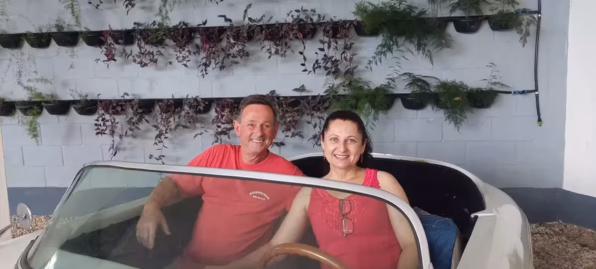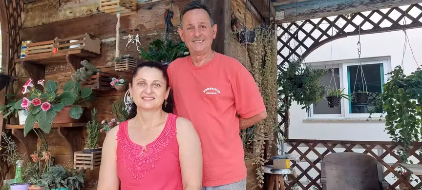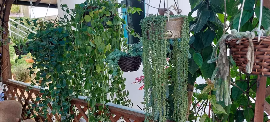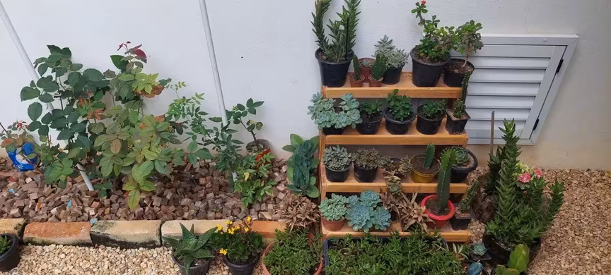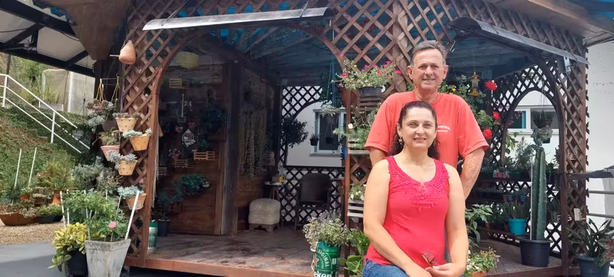 "Meu marido me auxilia no que se faz necessário, seja na fabricação de um vaso ou de algum suporte, ou ainda, quando algo pesado precisa ser trocado de lugar. Nesse caso, peço a ajuda dele", relata.