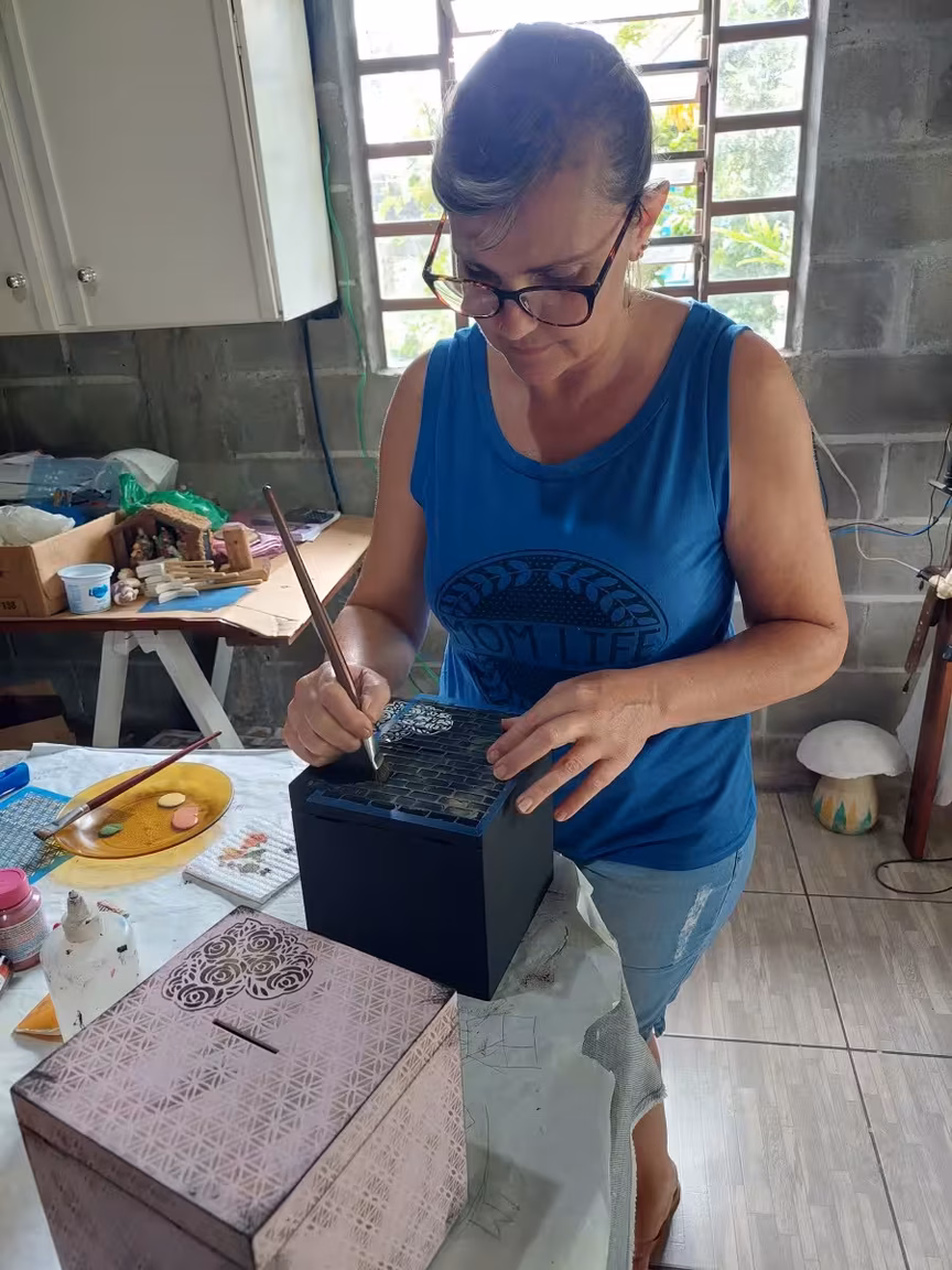 Além da restauração de imagens, Roseli trabalha também com montagens que envolvem madeiras. Seus trabalhos são minuciosos e dedicados, com o objetivo de resgatar e preservar memórias afetivas para as pessoas.