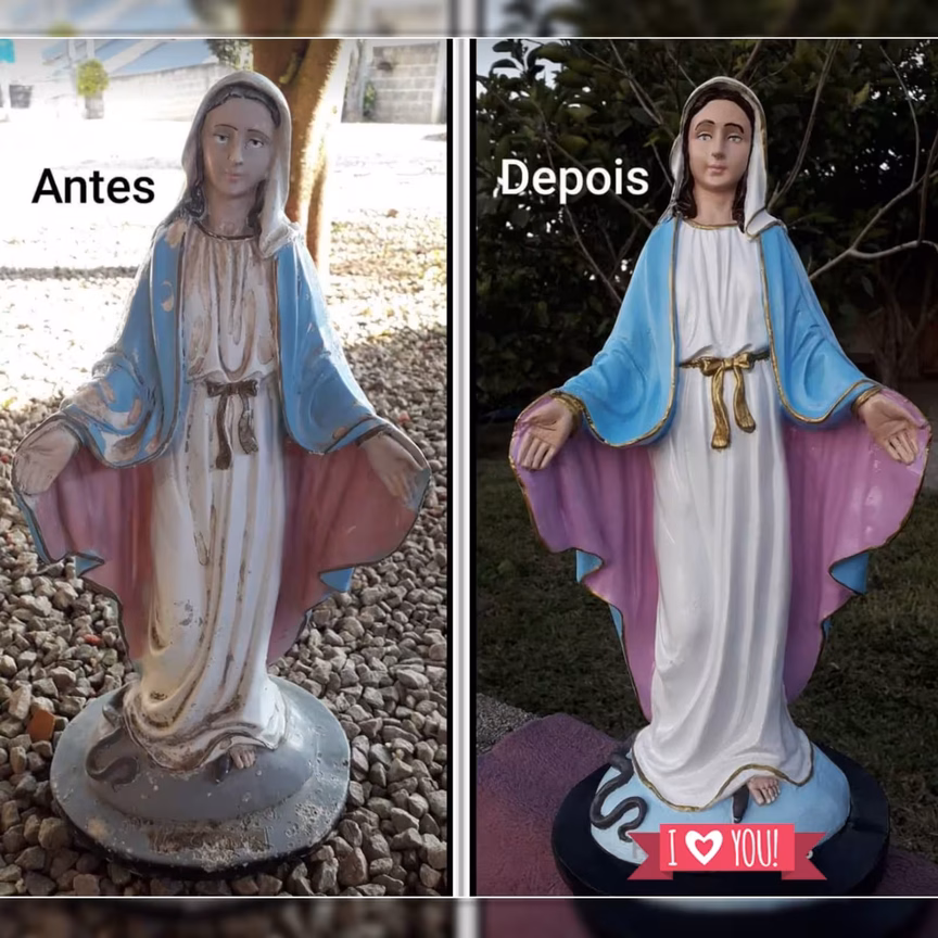 A restauração de imagens é uma arte que requer paciência, técnica e habilidade. Roseli é uma artista talentosa e competente, que transforma peças danificadas e desgastadas em obras de arte, resgatando a beleza original e preservando momentos inesquecíveis.