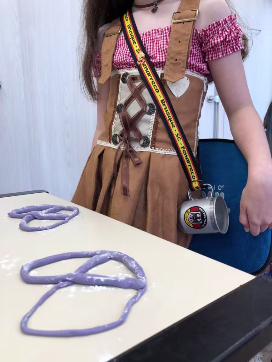 "Criar, organizar e executar todos os anos a Kinder-Oktoberfest nas aulas de alemão é para mim muito gratificante e prazeroso. Eu leciono a língua alemã com paixão e valorizo profundamente a herança linguístico-cultural deixada por meus antepassados. Ver os alunos avançando no aprendizado do alemão e na sua formação como cidadãos é minha fonte de inspiração para lecionar", diz a professora Emilia.