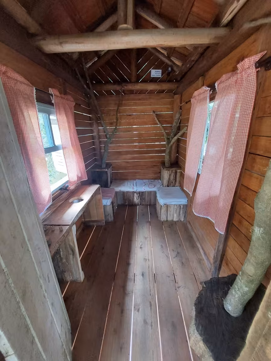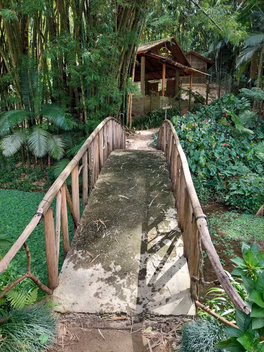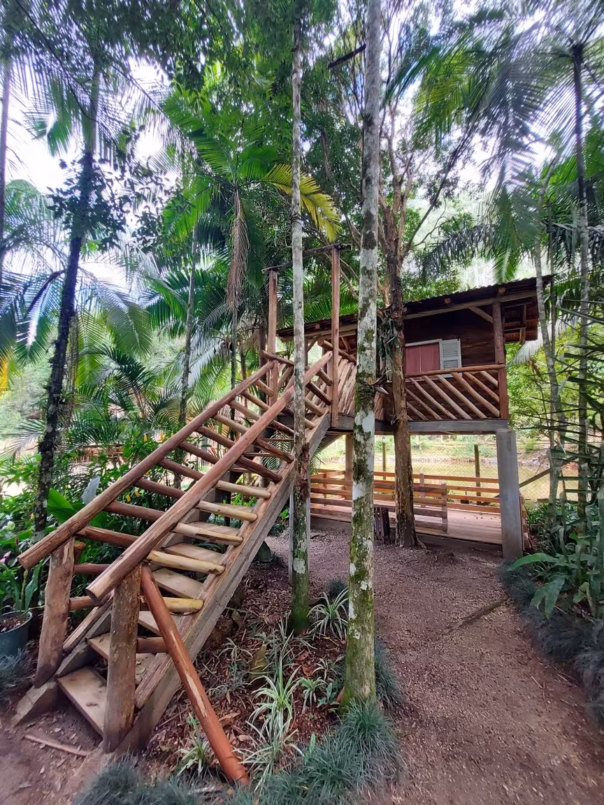 Rodeado de muitos animais e aves ornamentais, o lugar disponibiliza até uma casinha na árvore, construída pensando no bem estar das crianças, enquanto os pais podem caminhar pelas várias trilhas presentes no meio da mata.