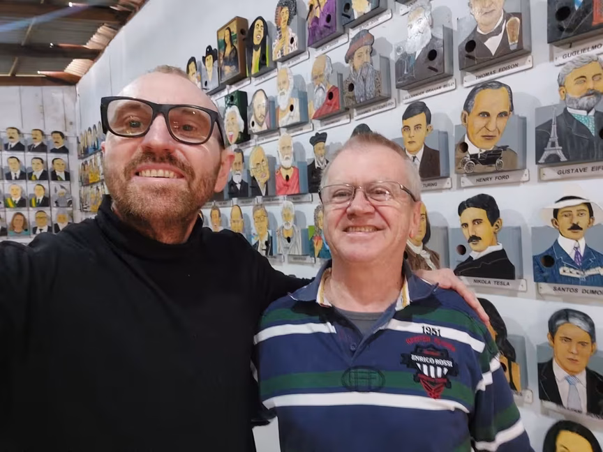 Na parede à esquerda da porta, o visitante pode se admirar com as belas pinturas feitas por ele. Casinhas com os rostos mais famosos do mundo: Freddy Mercury, Martin Luther King, Anne Frank, Pelé, Hebe Camargo, Cid Moreira, Ayrton Senna e Aristóteles são alguns em meio às dezenas de personalidades reproduzidas por ele.