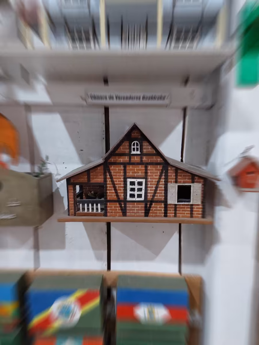 Na parte inferior de todo o acervo encontram-se, divididas por regiões, casinhas enfeitadas de diversos lugares do Brasil e do mundo. Ainda na parede à direita, encontram-se a Igreja Matriz de Guabiruba, a prefeitura, a câmara de vereadores, as igrejas de cada bairro e também os destemidos Pelznickel e Dragão de Guabiruba.