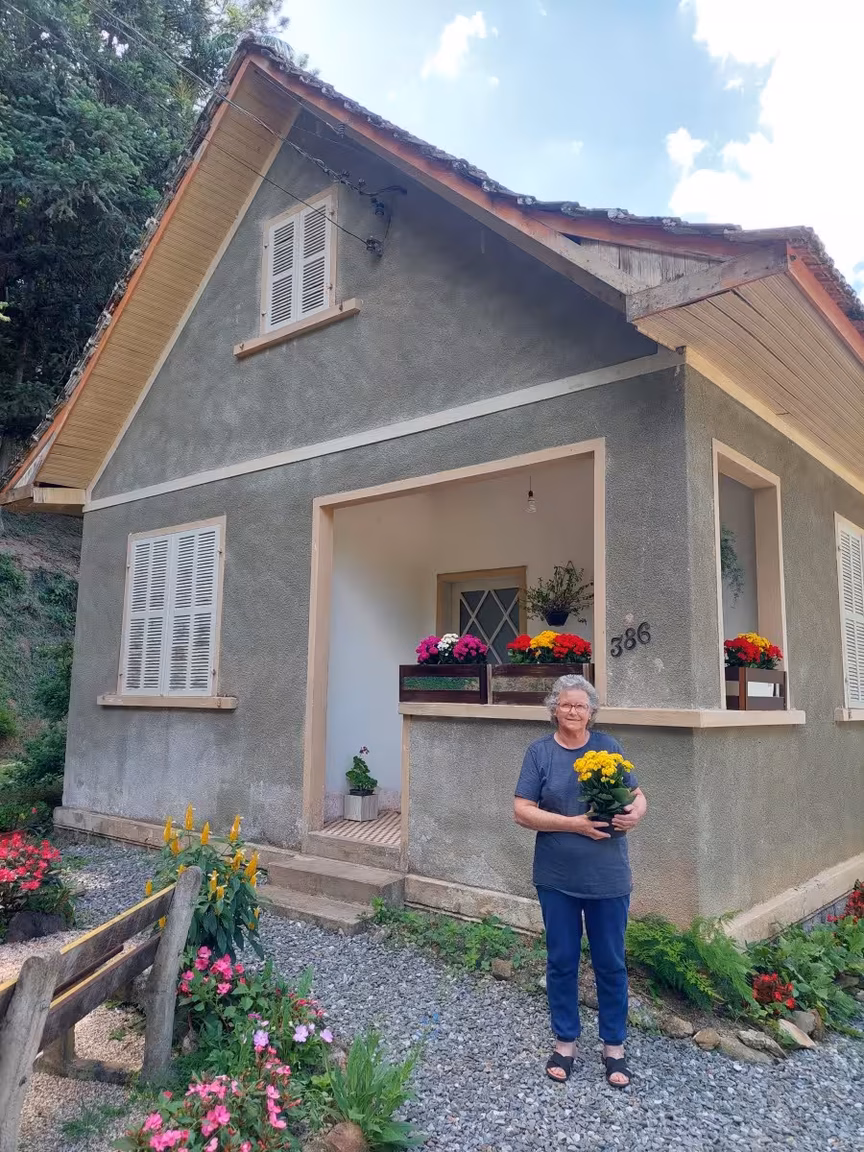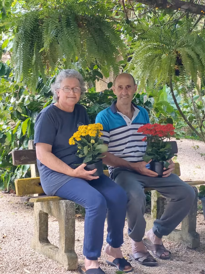 Além de sua habilidade com essa produção, Lourdete também tem uma paixão pela jardinagem e cultivo de flores, que carrega desde a infância. Seu esposo, Milton, auxilia em todas as etapas necessárias, desde a confecção de vasos e suportes até o transporte de objetos pesados.