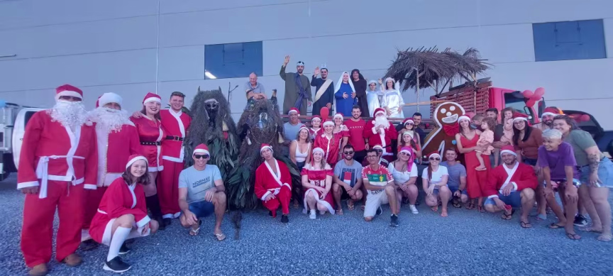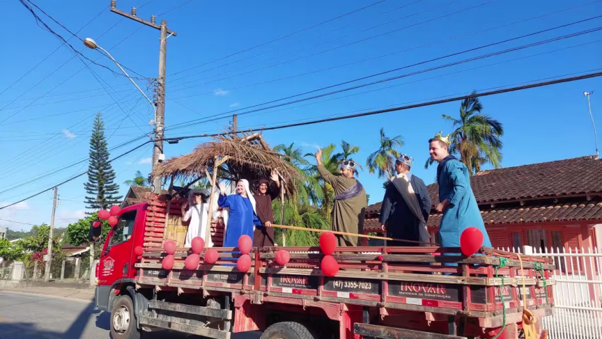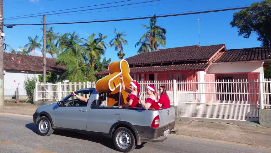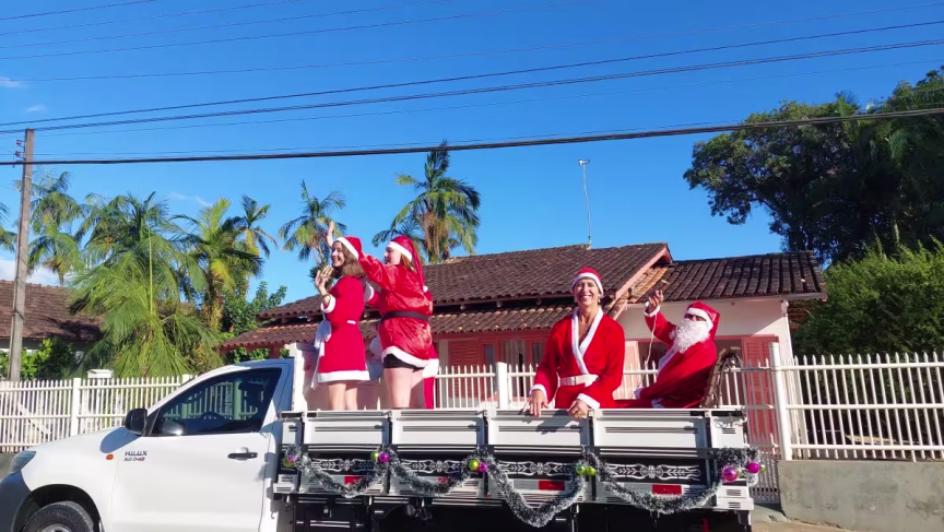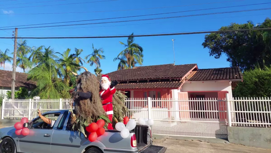 O entardecer do domingo, 19, de tempo seco em Brusque, foi especial para os moradores do Rio Branco que puderam apreciar a carreata do Papai Noel, organizada por moradores e empresários do bairro.